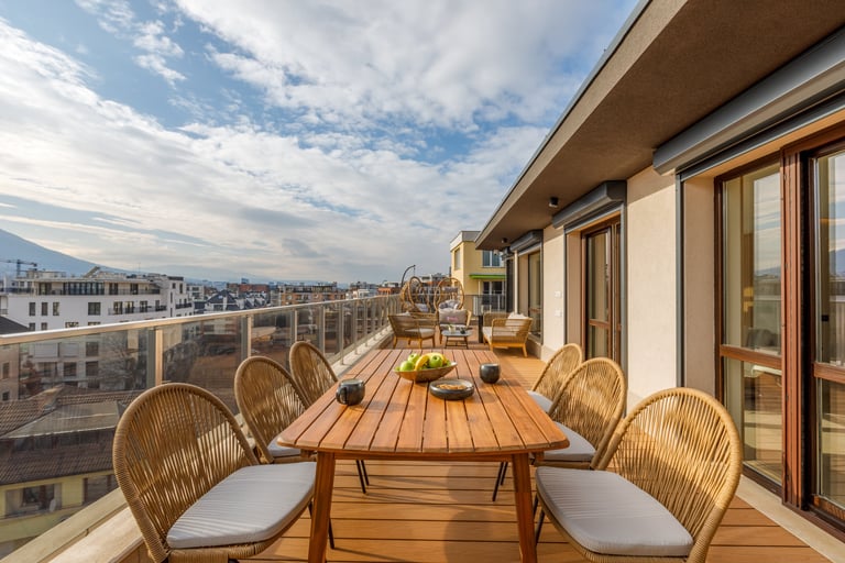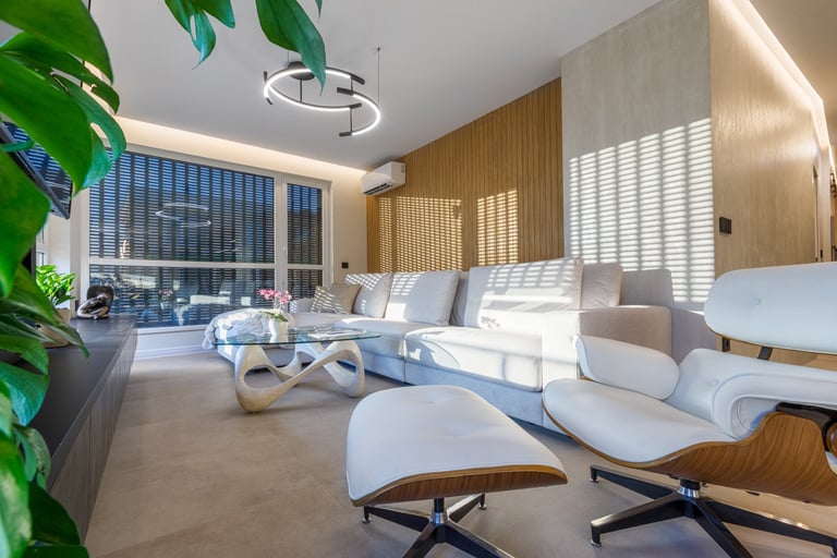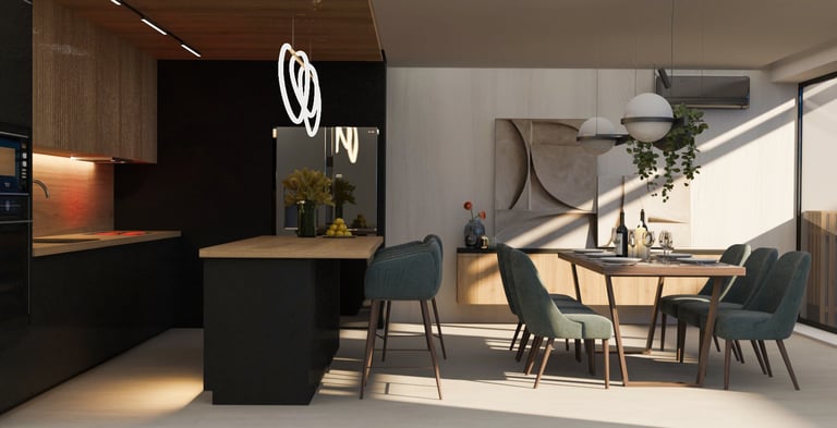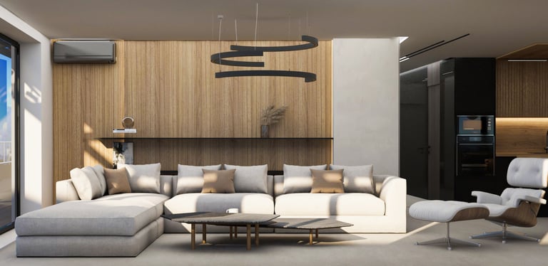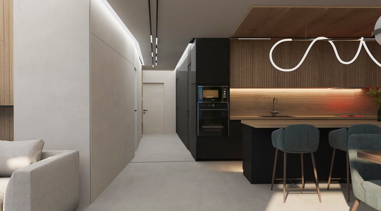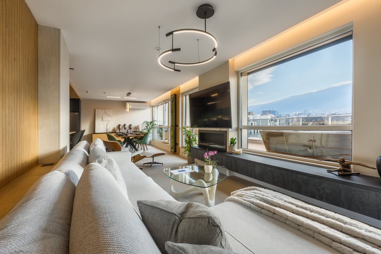 Разположен в София, този интериор съчетава уюта на дом с елегантността на шоурум. Вдъхновен от гледката към Витоша, проектът използва естествени материали и земни тонове, за да създаде хармония между природа, комфорт и съвременен стил.
