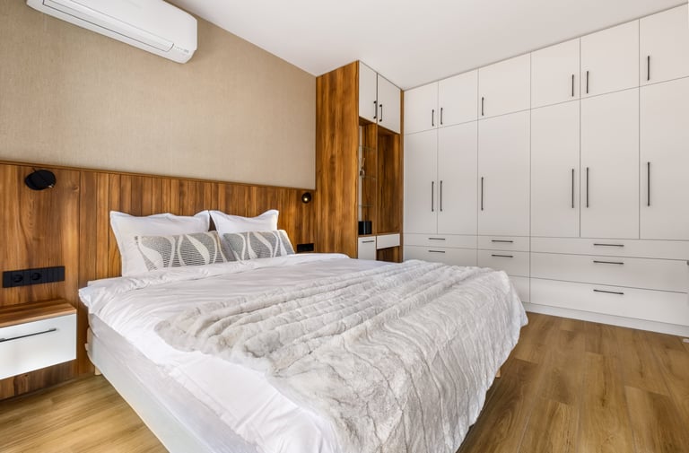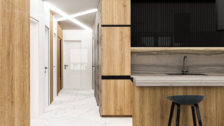 Този проект за интериорен дизайн на апартамент в София беше отличен в топ 10 на конкурса „Nova City D-zine“и създава съвременен дом, балансирайки елегантност и функционалност. Апартъментът е едновременно функционален и елегантен и осигурява място, в което родителите могат да релаксират, децата да си играят и растат и всички могат да се наслаждават на връзката с природата. Проектиран за четиричленно семейство, домът съчетава модерни, стилни елементи с естествени текстури и земни тонове, които създават уютна атмосфера и усещане за спокойствие.