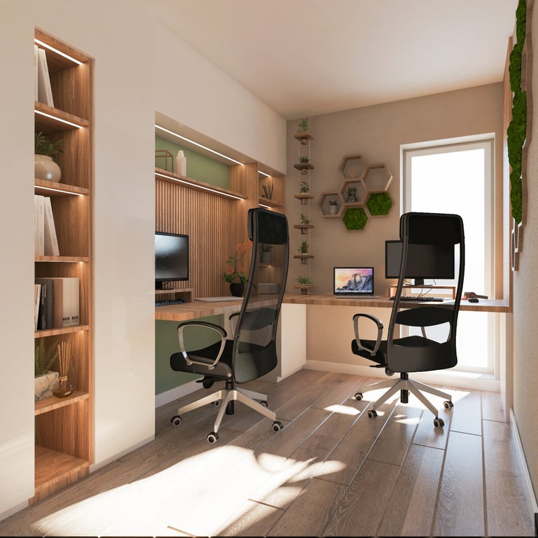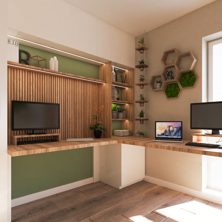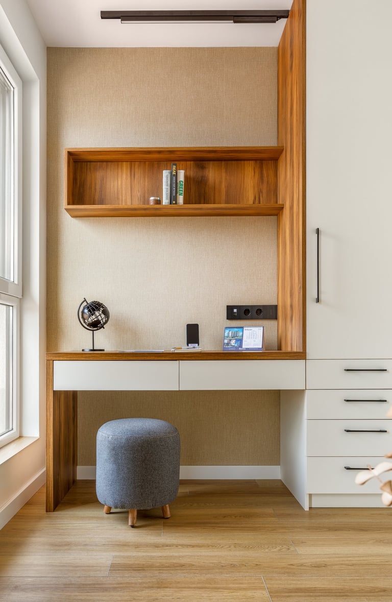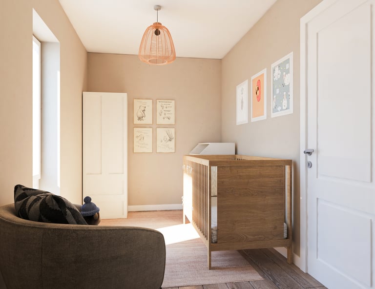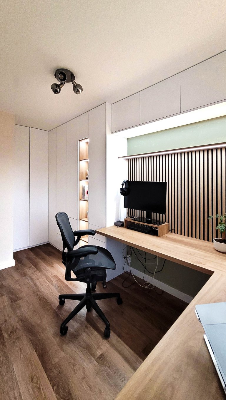 Преобразихме домашния офис в приветливо и вдъхновяващо място, което съчетава функционалност с уют, предоставяйки пространство за работа и отдих. Бързо тази стая стана от най-неприятна в любима на двойката. Детската стая пък бе проектирана с мисъл за бъдещето – така че да расте заедно с детето. Използвахме мебели, които могат да се трансформират, нежни цветове и игриви елементи. Така стаята отговаря на нуждите на детето на различни етапи от растежа му и предлага както уют, така и пространство за игра и развитие.