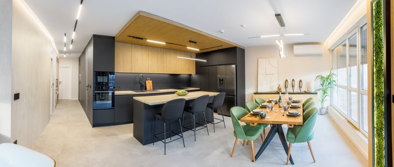 Младо семейство от Лондон потърси помощта на нашето студио с една основна цел: да създаде уютен дом, който съчетава практичност с усещане за природа. Те бяха изправени пред предизвикателството да превърнат пространствата в едновременно красиви и функционални. Нашият екип се зае със задачата да пренесе елементи от природата в дизайна, като добави модерни акценти и отговори на индивидуалните нужди на семейството. Повече за проекта може да намерите в статията ни: